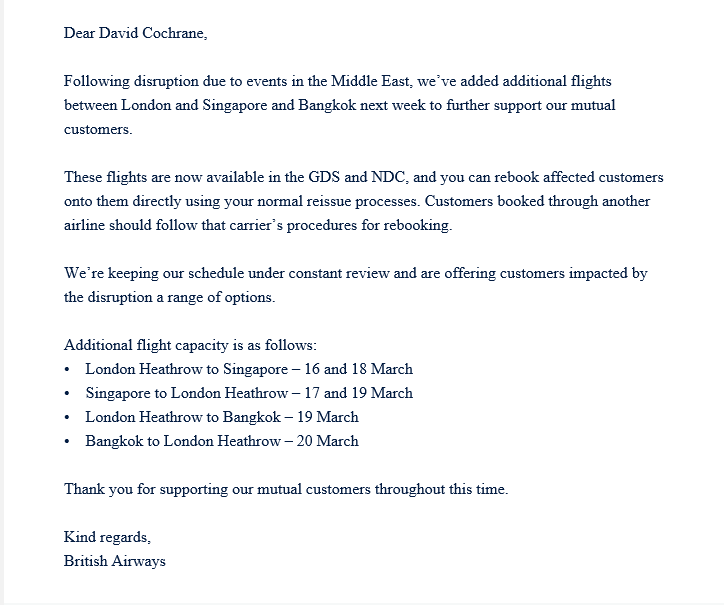 • Handling Procedures for Cancellation TG918/TG919 London - Phuket - London Flight Cancellations
