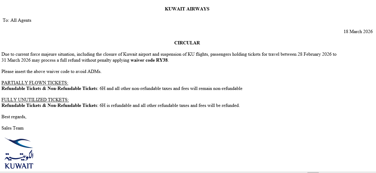 • GF - Sales Talk Updated with Partial Refund Policy for Passengers Impacted by Flight Cancellations To/From PEW/SKT/MUX/LYP