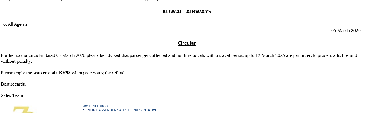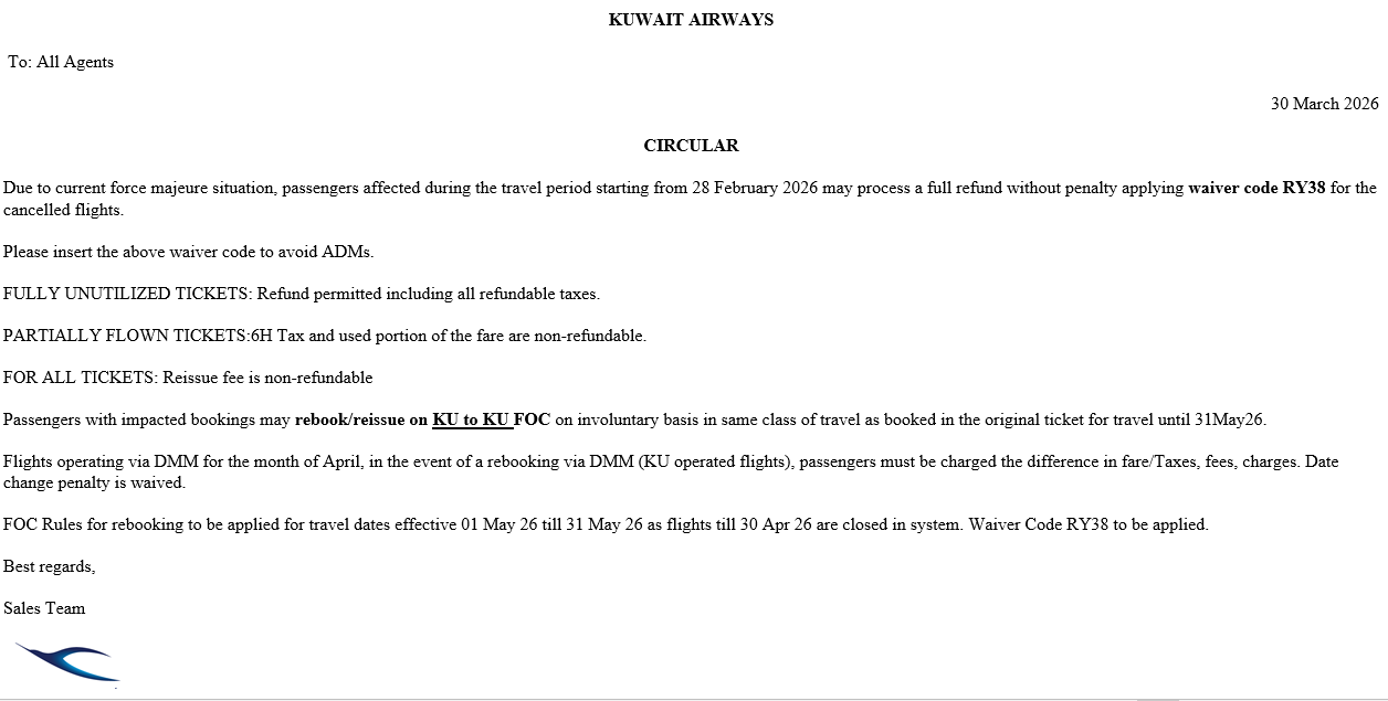 • GF - Sales Talk Updated with Partial Refund Policy for Passengers Impacted by Flight Cancellations To/From PEW/SKT/MUX/LYP